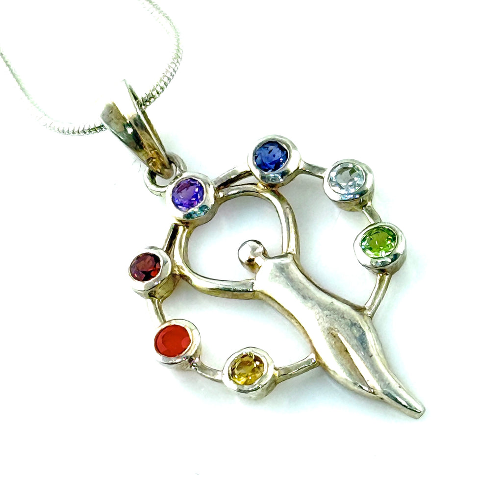 Garnet, Carnelian, Citrine, Peridot, Blue Topaz, Iolite, & Amethyst set in solid sterling silver artisan crafted Chakra pendant.
